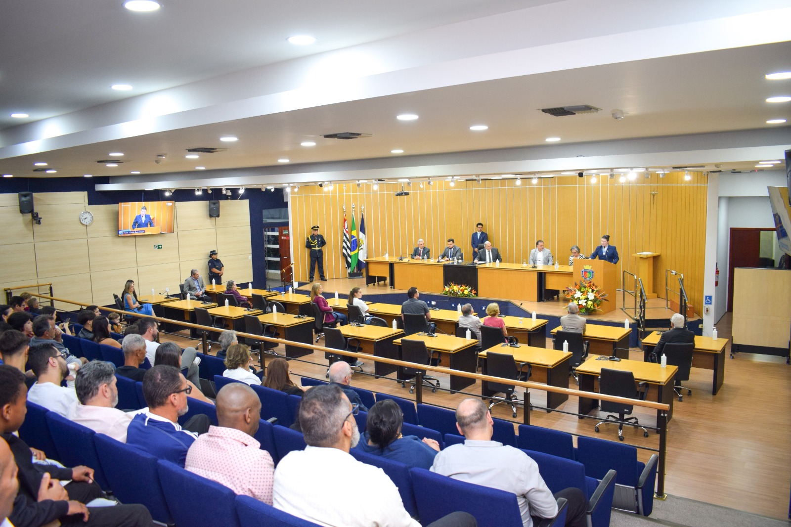 A cerimônia foi aberta pelo presidente da Câmara, Doutor Seraphim (PL), que enalteceu as contribuições do homenageado para o desenvolvimento da cidade. “É sempre uma grande alegria presidir esta sessão, pois é missão desta Casa homenagear pessoas que fazem parte da nossa história”, afirmou. “Ele concretizou o sonho de ter sua própria usinagem e colaborou com o crescimento do município, não só como empresário, mas também como voluntário e presidente do Centro Esportivo e Recreativo (CRE) Sete de Setembro. Parabenizo o senhor Ovídio pelo título de Cidadão Sulsancaetanense que receberá nesta noite e por todo o trabalho realizado na cidade”, completou.