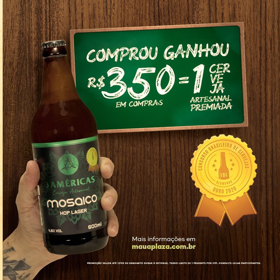 Para comemorar o Dia dos Pais deste ano, o Mauá Plaza Shopping quer proporcionar às famílias momentos de diversão e alegria, fazendo com que os pais se sintam especiais e valorizados. Por isso, os clientes que consumirem R$350,00 em compras em todas as lojas do Mauá Plaza (exceto Assaí, estacionamento, farmácias e operações bancárias) vão ganhar a premiada cerveja artesanal Mosaico Hop Lager da cervejaria 3 Américas.