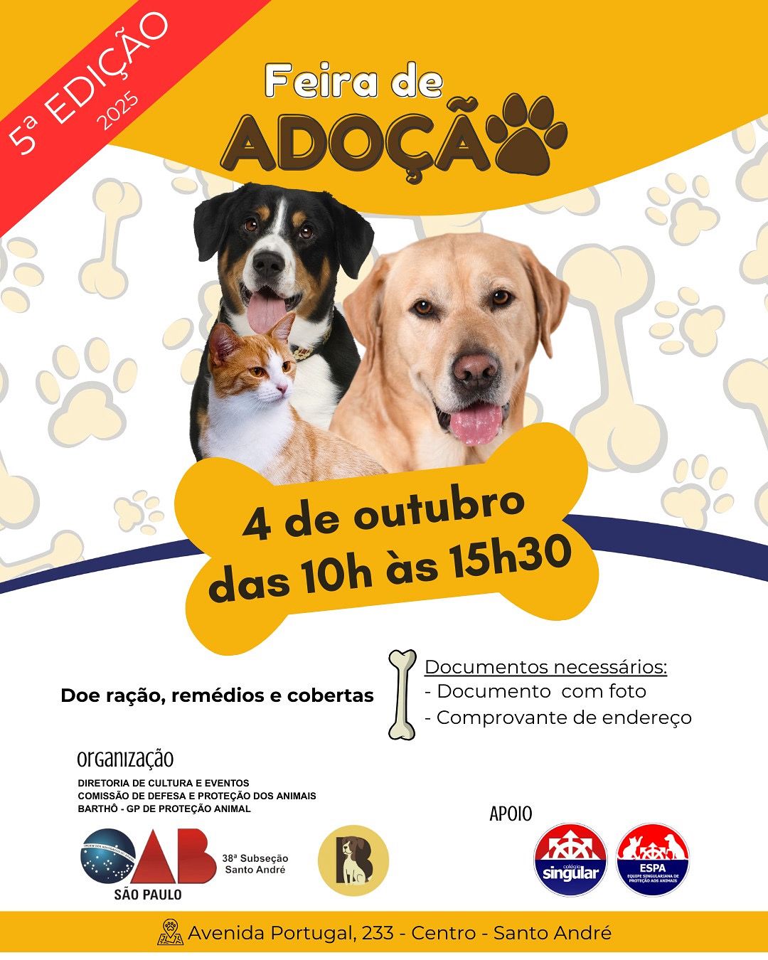 Feira de adoção animal da OAB recebe apoio do Singular
