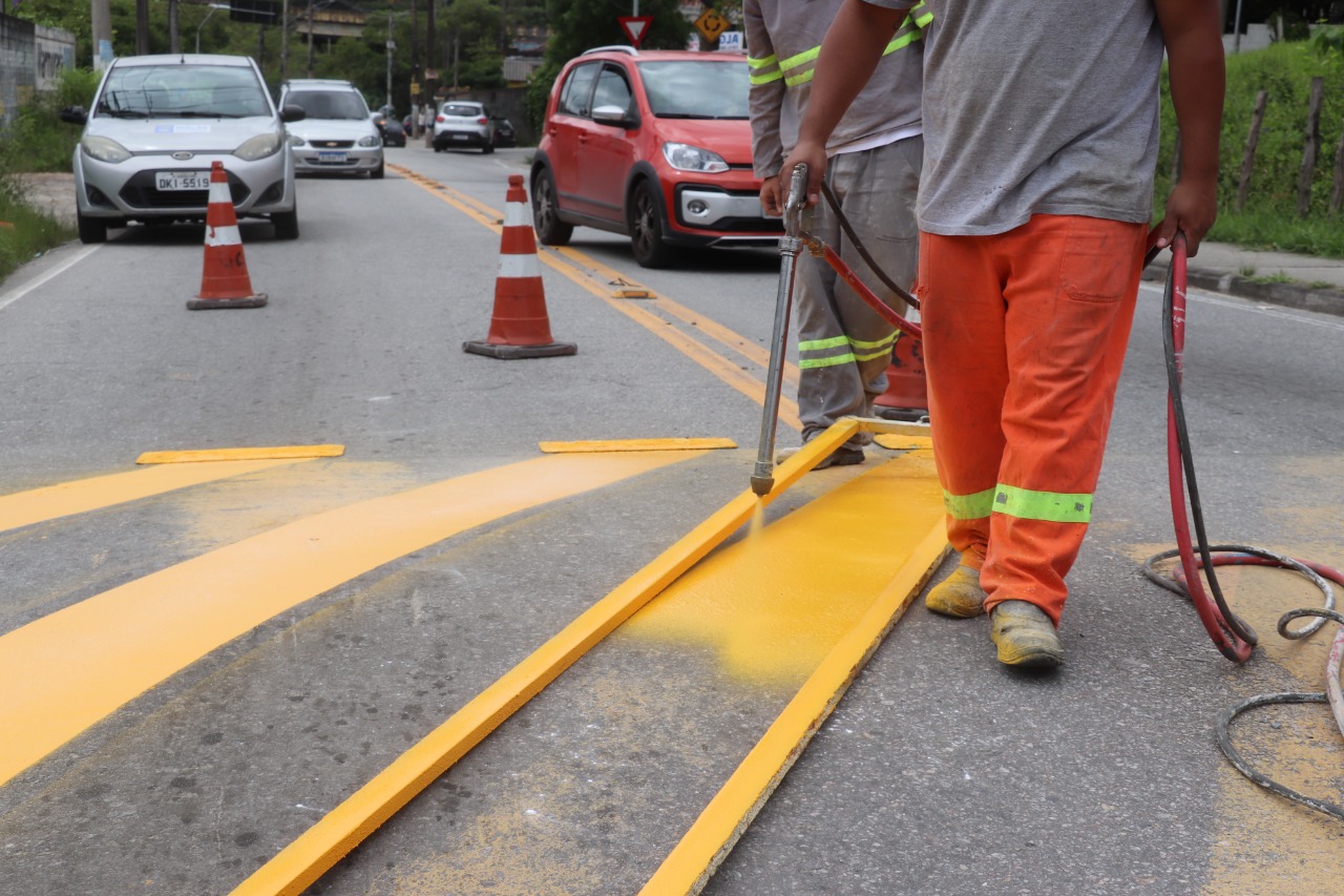 Trânsito de Ribeirão Pires reforça sinalização de solo