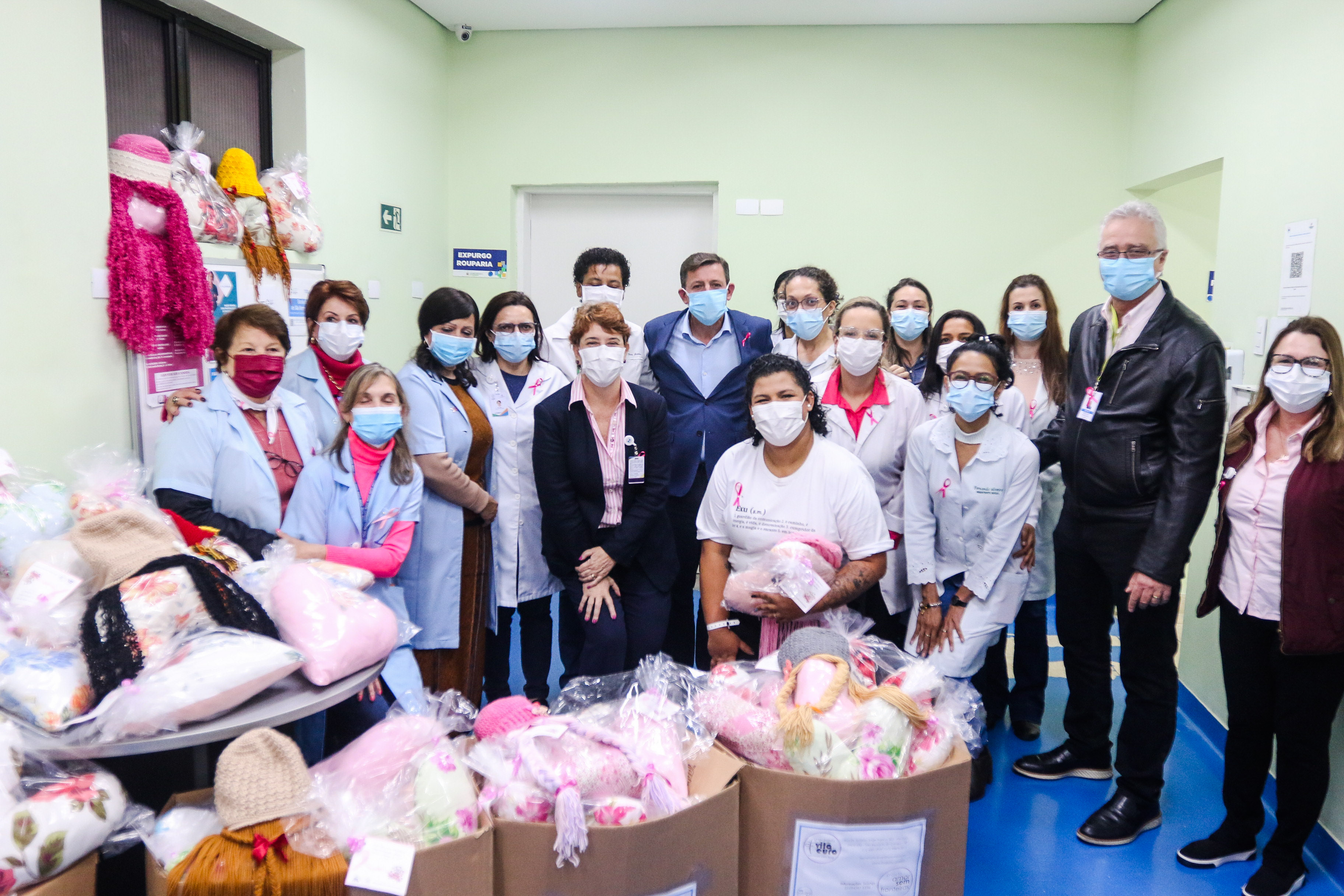 O mês de outubro está marcado no calendário com a cor rosa para alertar as mulheres e a sociedade sobre a importância da prevenção e do diagnóstico precoce do câncer de mama e, mais recentemente, do câncer de colo do útero. Em São Bernardo, as pacientes em tratamento contra as doenças receberam, nesta segunda-feira (3/10), doações de perucas de princesas e almofadas em formato de coração, do projeto “Amor sem Fronteiras”, confeccionadas pelas voluntárias da instituição.